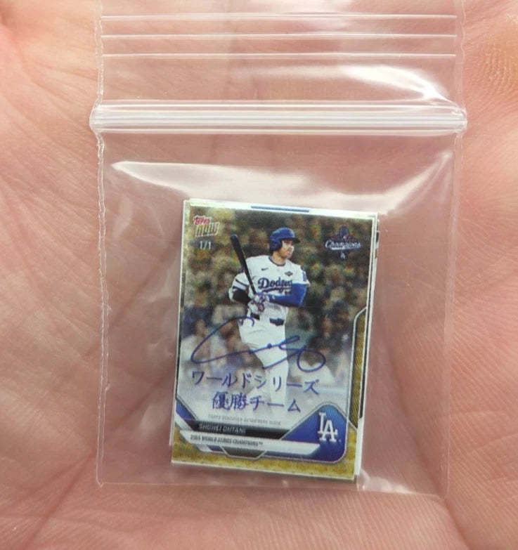 Claim a Limited Edition Shohei Ohtani Miniature Card Set featuring 8 ultra-tiny custom art cards, all inspired by iconic Ohtani moments. These are custom miniature collectibles, created for fans who love unique display pieces.