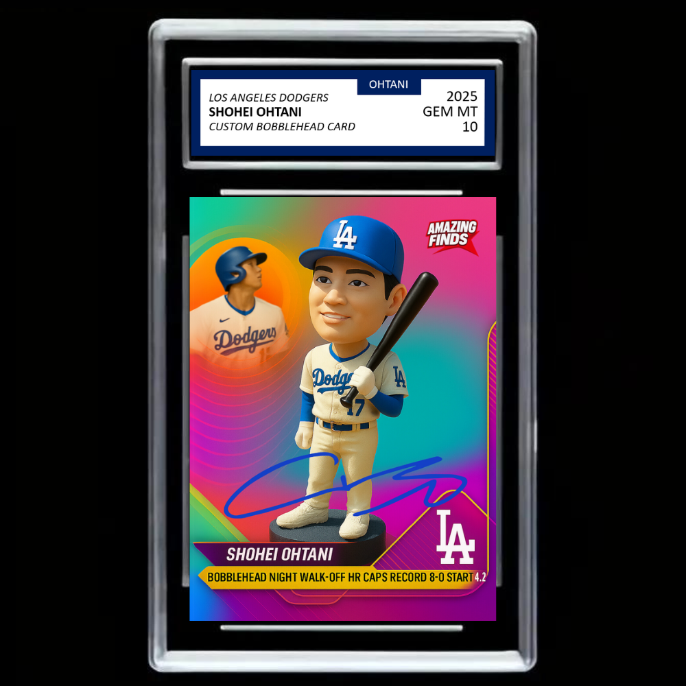 Celebrate one of the most unforgettable nights in Dodgers history with this Graded Gem Mint 10 Shohei Ohtani collector card. On Bobblehead Night, Ohtani stepped up in true superstar fashion — crushing a walk-off home run that sent fans into a frenzy and capped the team’s perfect 8-0 start.
